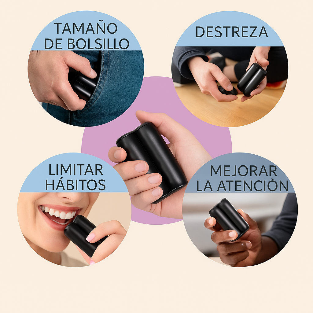 Ya sea en el trabajo, en casa o en movimiento, este gadget portátil para aliviar la ansiedad es la herramienta perfecta para mantener la calma y recuperar tu bienestar en cuestión de segundos. Experimenta una forma sencilla y efectiva de tranquilizar tu mente y superar los momentos de tensión cotidiana.